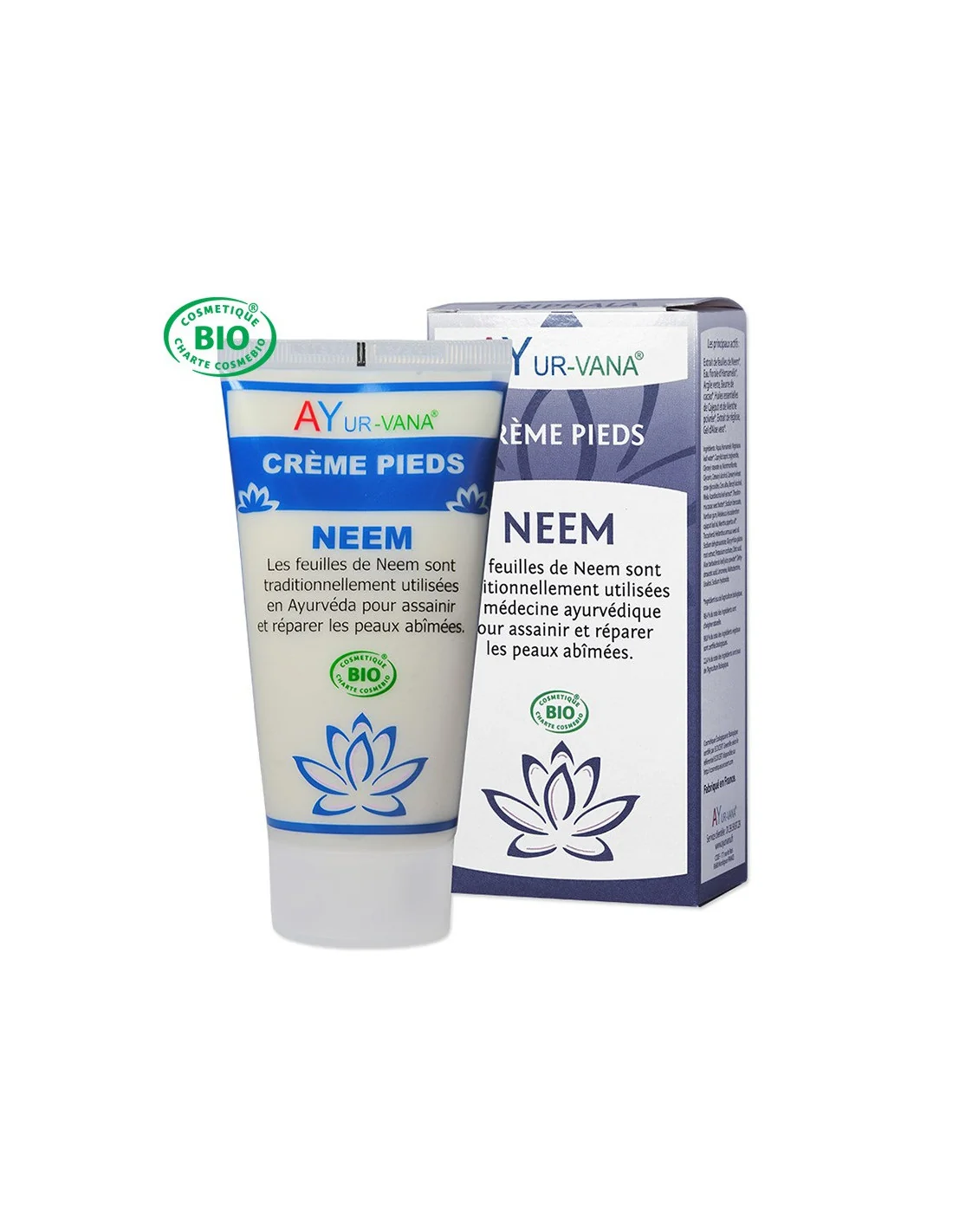 Crema de Pies con Neem Orgánico Ayur-Vana, una línea de cuidado efectivo, ético y natural disponible en línea en su tienda orgánica.