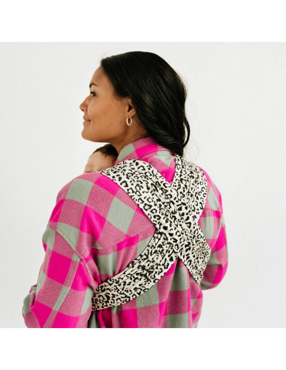 Este portador de bebés, disponible en dos tamaños, consta de un material de algodón 100% orgánico ultra suave (material certificado OEKO-TEX), libre de sustancias nocivas, fabricado directamente en un taller portugués, certificado GOTS.