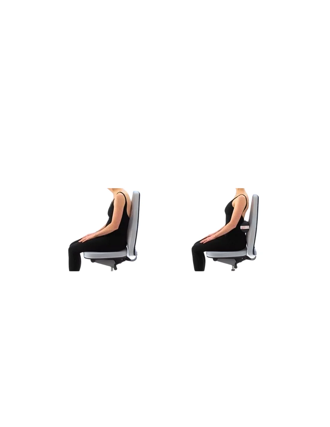 Puede ver un ejemplo de postura correcta (ver foto) con un cojín lumbar estándar.