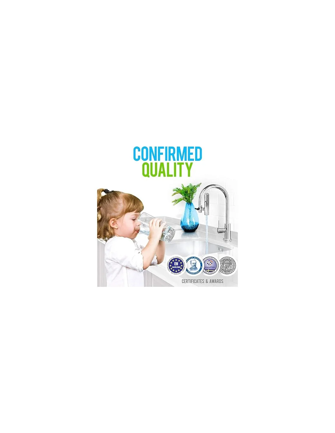 Este kit es perfecto para obtener agua pura del grifo. Ofrece una purificación muy eficaz: elimina las sustancias no deseadas de agua al tiempo que conserva su mineralización. Puede eliminar cloro, reducir la caliza, neutralizar pesticidas, drogas, metales pesados, bacterias, virus, radiactividad y revitalizar el agua a través de la acción del micro vórtice de su membrana.