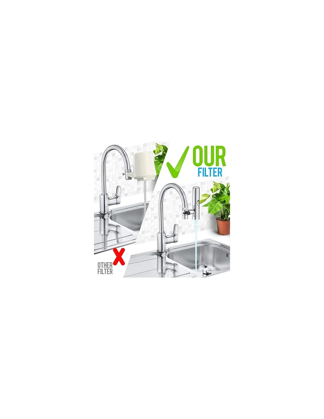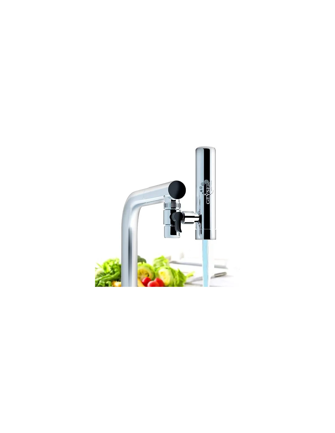 La gama de productos GEYSER también ofrece un purificador de agua en el fregadero. Este último ofrece un sistema de filtración más completo ya que su cartucho contiene carbono activado. Además, la vida de los cartuchos es más larga.