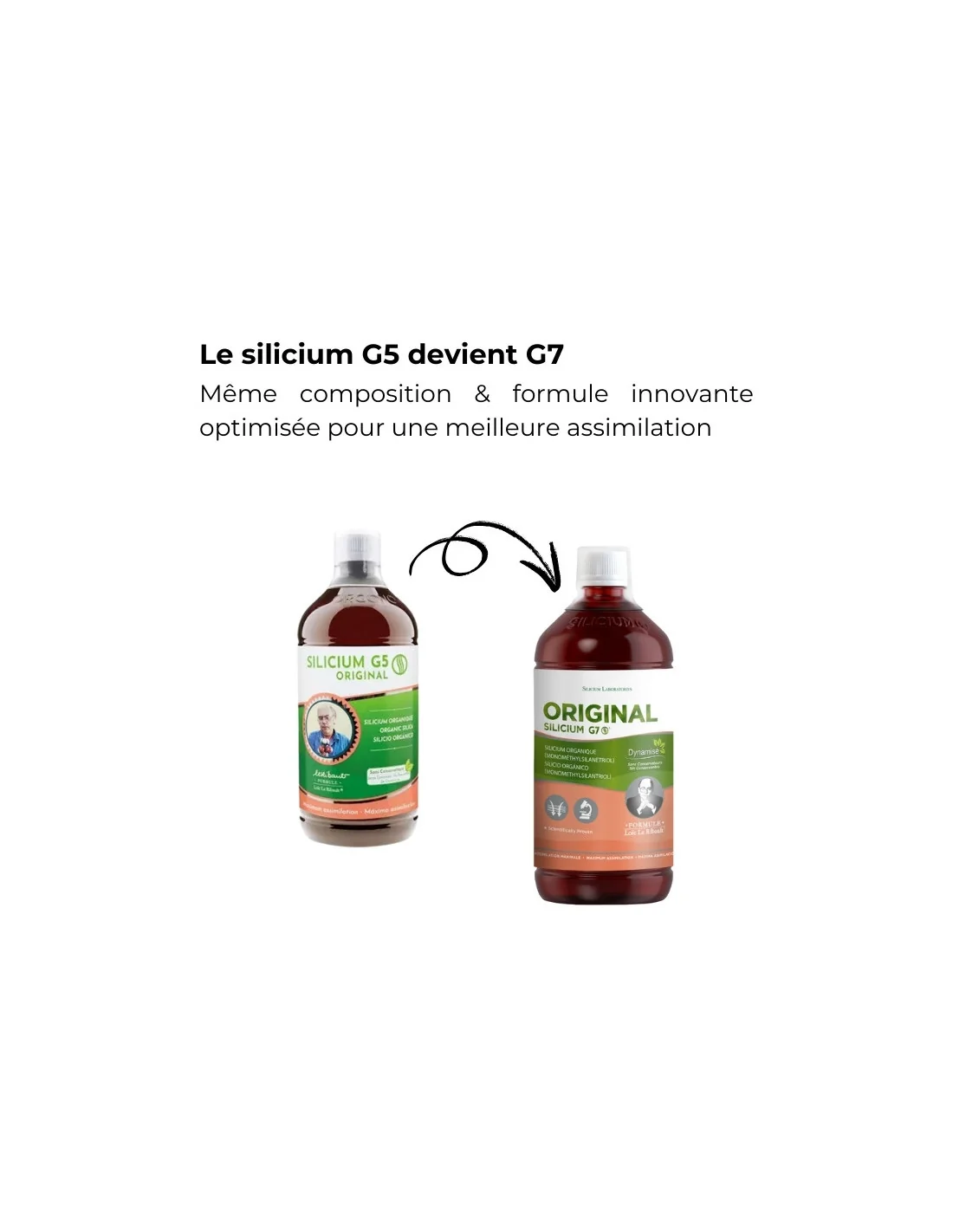 El G7 alimentado por el Doctor Loïc le Ribault es la nueva generación de silicio orgánico, resultante de la innovación tecnológica permitiendo una asimilación óptima. Su proceso de dinamización se basa en la aplicación de una presión de 6.000 atmósferas en una cámara hiperbárica, favoreciendo la unión de la molécula de silicio al agua. Este proceso mejora su solubilidad y paso a través de células, garantizando una mayor eficiencia.