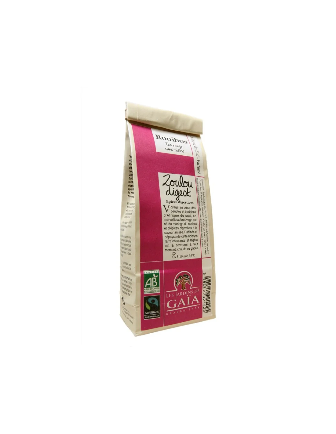 El té Rooibos "Zoulou Digest" con sabor a té Rooibos de los Jardines de Gaïa es excelente para una buena digestión.