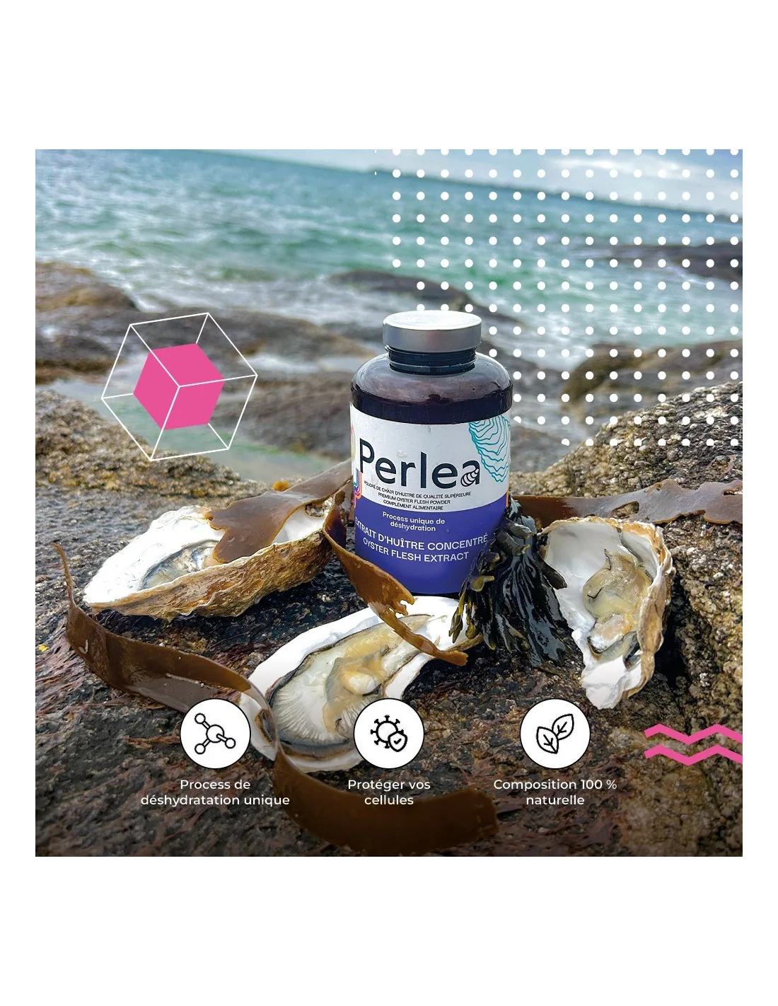 Perlea est une marque française spécialisée dans les compléments alimentaires à base de ressources marines naturelles. Sa poudre de chair d’huîtres est issue d’un procédé doux de déshydratation qui préserve l’intégrité des nutriments présents dans la chair, sans additifs ni conservateurs.